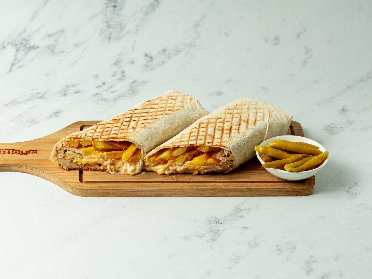 Лаваш, курица, сыр, фирменный соус, кетчуп.