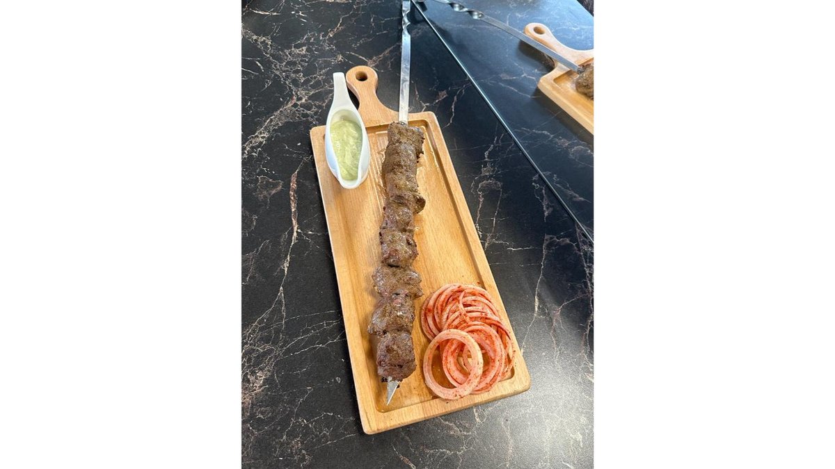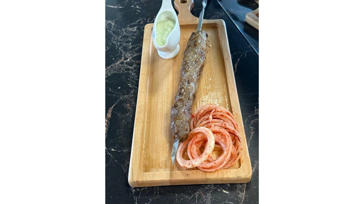 Баранина филе кусковая, фирменный соус, маринованный лук