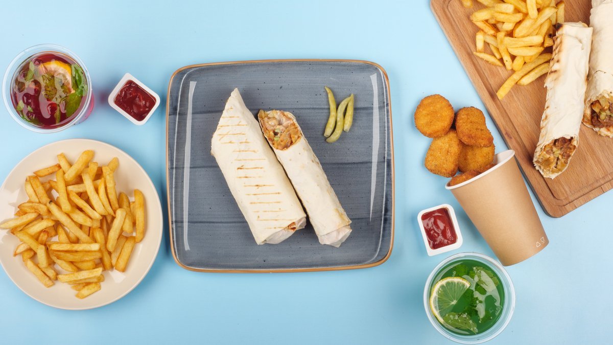 Шырынды тауық сан етінен жасалған дөнерлер, табиғи соустар және қолмен пісірілген жаңа пита мен лаваш.
