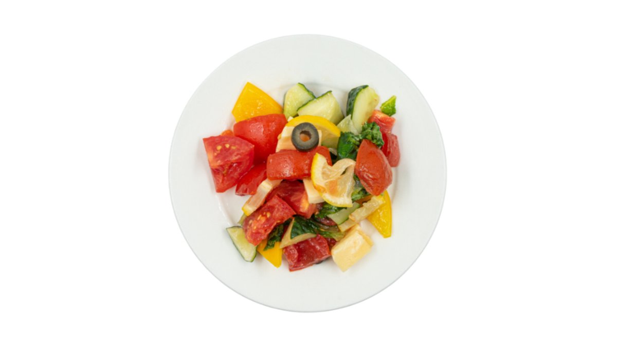 Свежий и легкий салат из сочных помидоров, хрустящих огурцов, сладкого болгарского перца, красного лука, маслин и нежного сыра фета. Заправлен ароматным оливковым маслом и прованскими травами