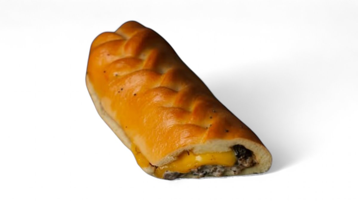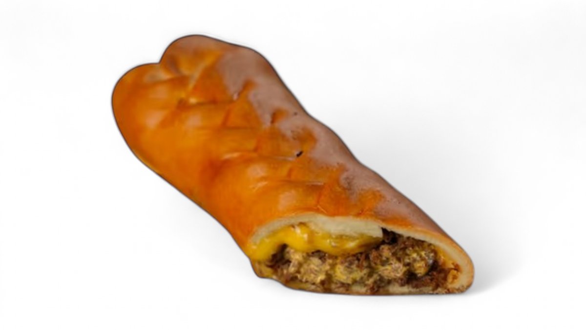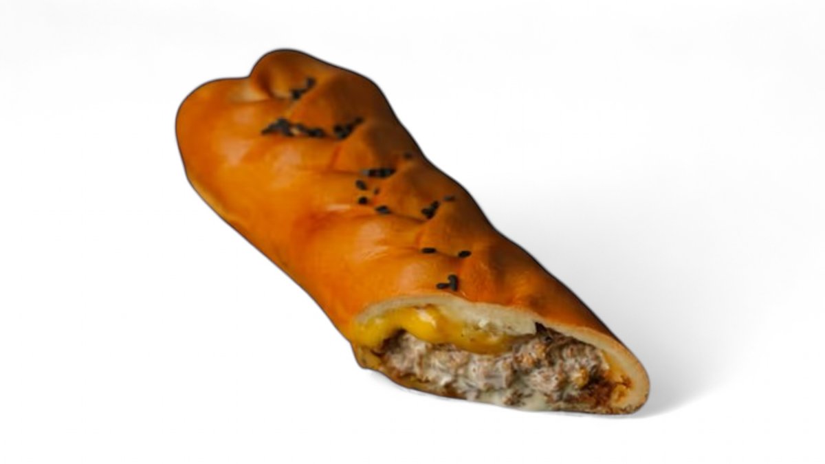 Домашняя булочка с начинкой из томленого мясо говядины с выбранным вами соусом и с тертым сыром, кладем это под тостер и получаем наш грильпай