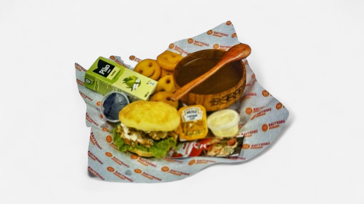 Мини классический бауырдак с курицей, костный бульон,курт,кетчуп, сырный соус,сок,фри