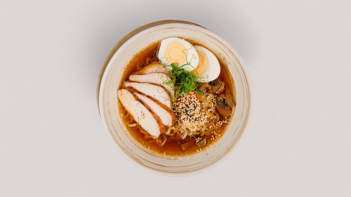 Ароматный японский суп на насыщенном бульоне, с нежным куриным мясом, лапшой рамен, яйцом, овощами и зеленью. Подаётся горячим, с лёгким азиатским вкусом и сбалансированной остротой.