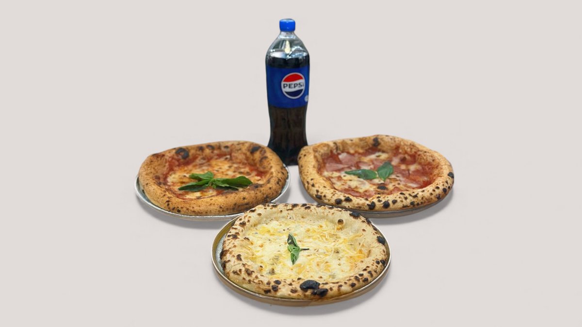 Классическая Маргарита (25 см, 1 шт) с нежной моцареллой, пикантная Пепперони (25 см, 1 шт) и насыщенная Болоньезе (25 см, 1 шт) на фирменном неаполитанском тесте. А к ним освежающая Pepsi 1 литр в подарок! Отличный выбор для компании и семейного ужина.