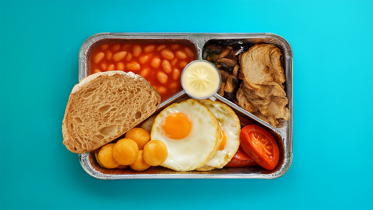 крокеты , запеченная индейка , помидор , красная фасоль , яйца , шампиньоны , хлеб аля компань , масло сливочное.