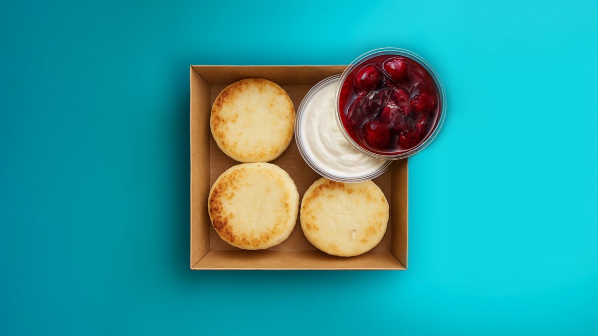 состав: творог,сахар,яйцо,ванилин,мука пшеничная в/с,крупа манная,сметана,масло растительное,мука семола. В упаковке 3шт по 50гр+сметана 50гр+вишневый джем 30гр