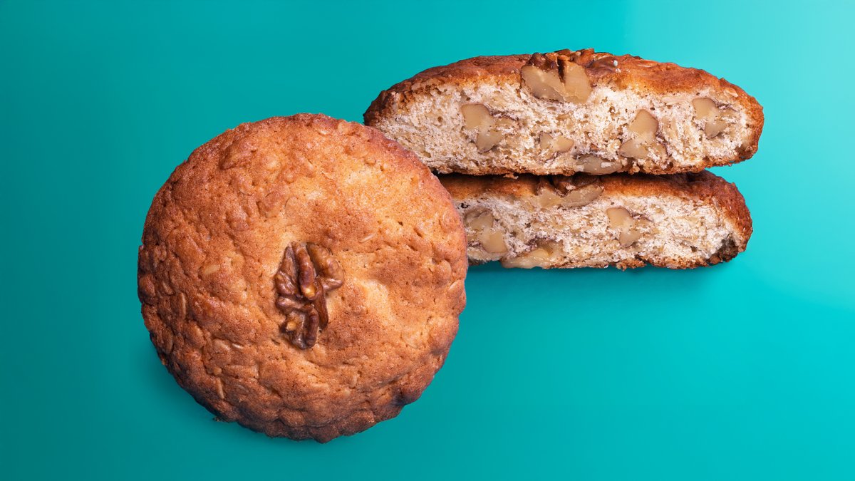 Сливочное масло, яйцо, мука, овсяные хлопья и грецкий орех