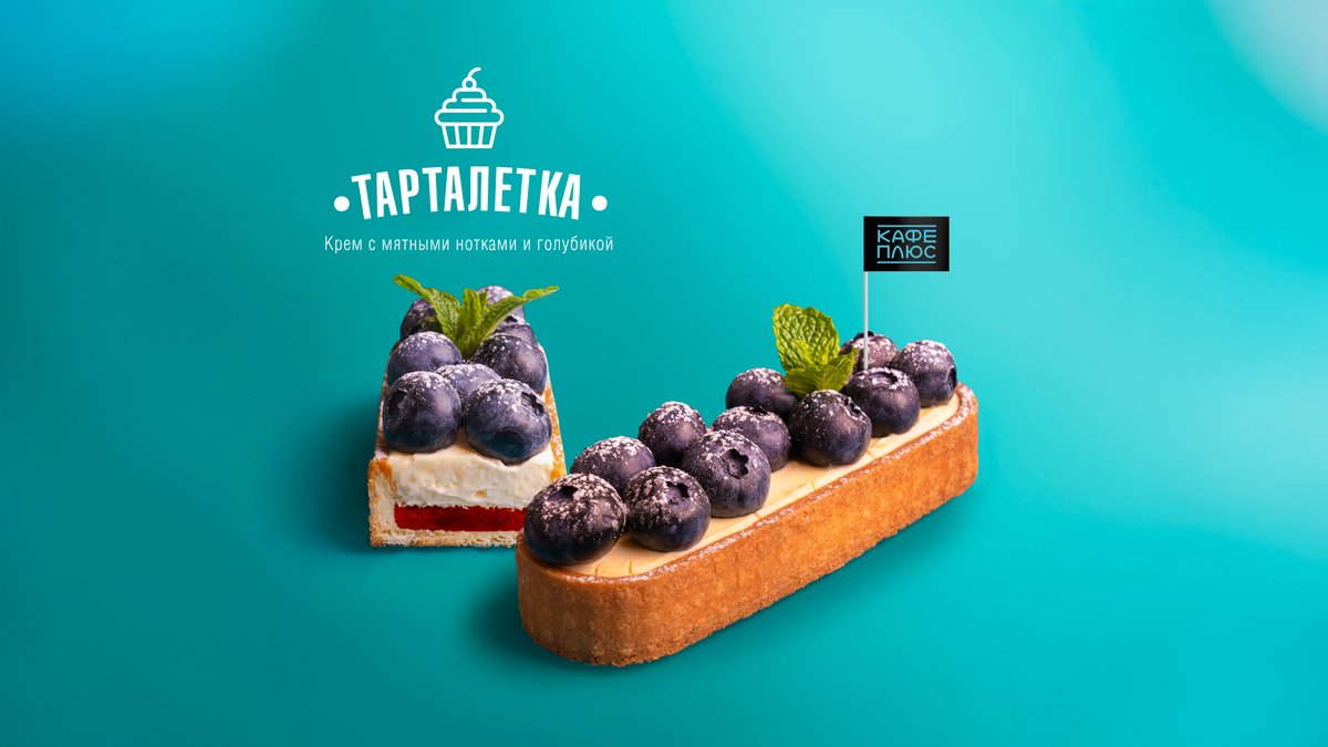 Песочная тарталетка, бисквит "франжипан", джем со смородиной, заварной крем с мятой, свежая голубика