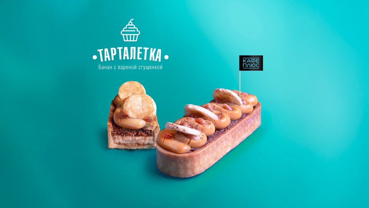 Овальная тарталетка на основе песочного теста Состав: вареная сгущенка, свежий банан, шоколадная вафля, карамельный мусс Декор : свежий банан, соленая карамель и какао порошок