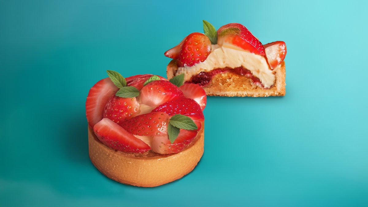 песочное тесто, джем клубничный, франжипан, свежая мята, свежая клубника