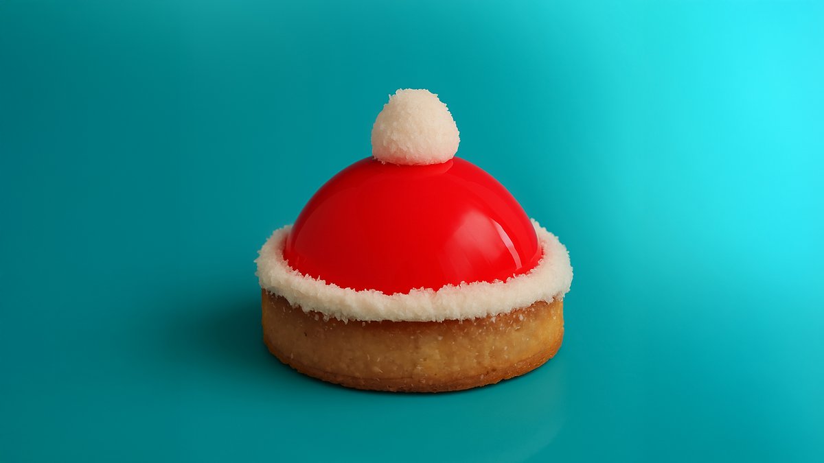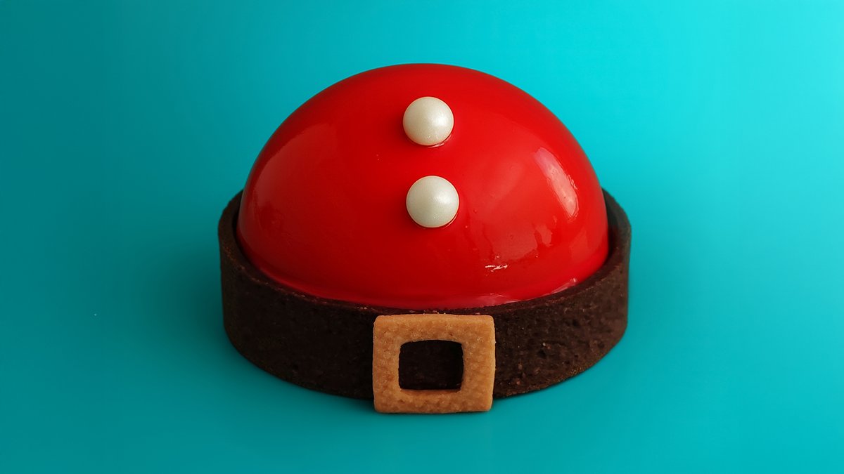 тарталетка – колпак Санты - мусс кокосовый - начинка Рафаэлло - франжипан