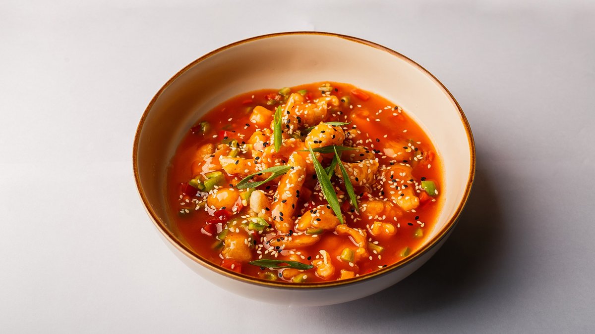 Жареные тигровые креветки. Подаются в кисло-остром соусе