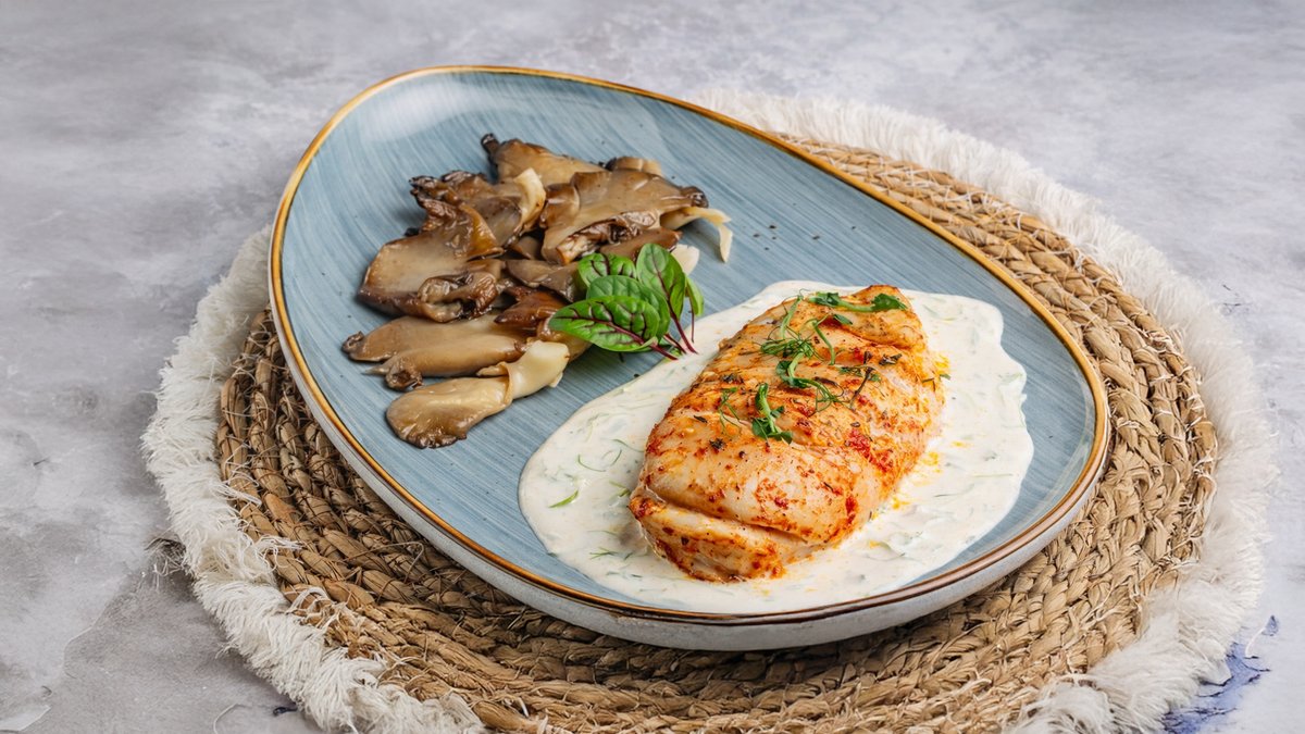 вырезка из телятины с грибами в сливочном соусе. подается с пюре
