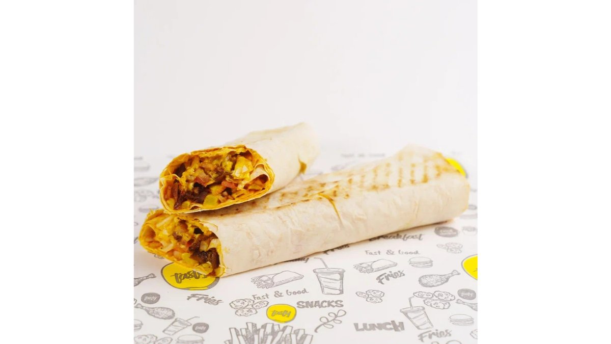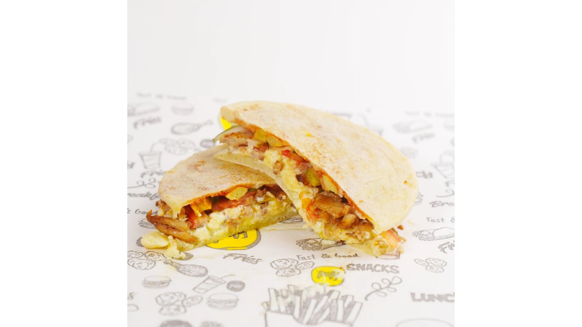 Пресная лепешка, говядина , фри,помидор,соленые огурцы, сыр чеддр,соус