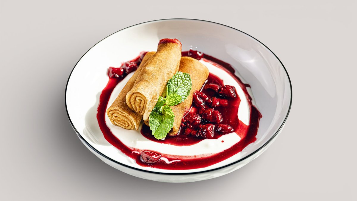 Блинчики с ягодным соусом и сметаной