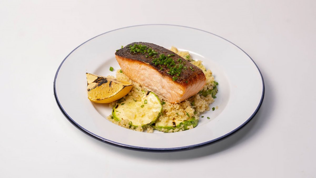 спинка лосося\печеные кабачки с кускусом\соус ремулад
