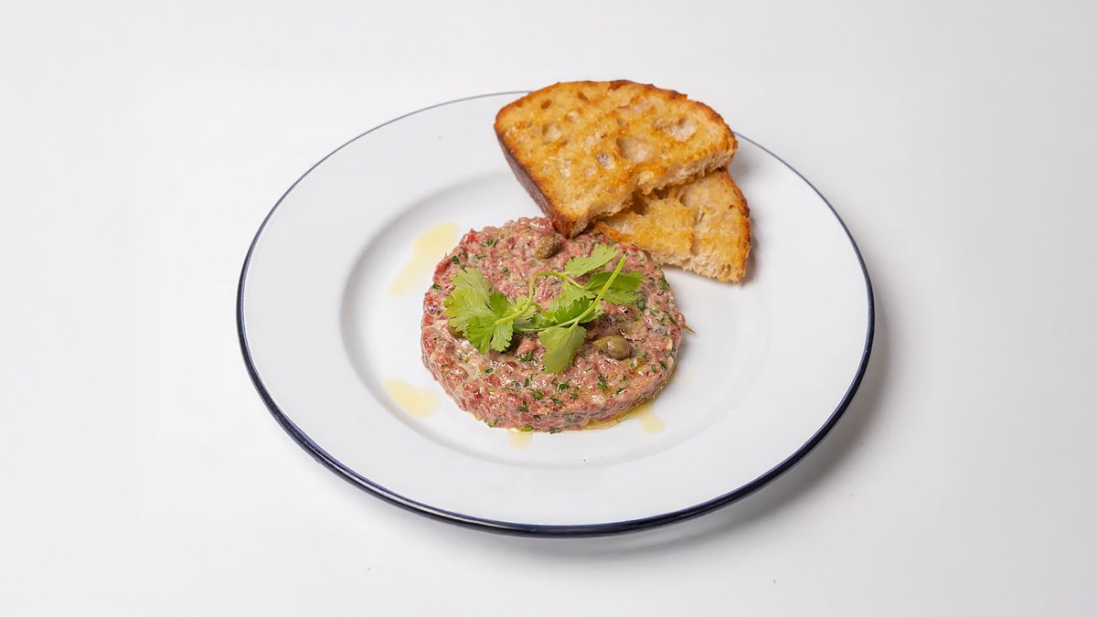 тартар из телятины с острым айоли\каперсы\поджаренный хлеб