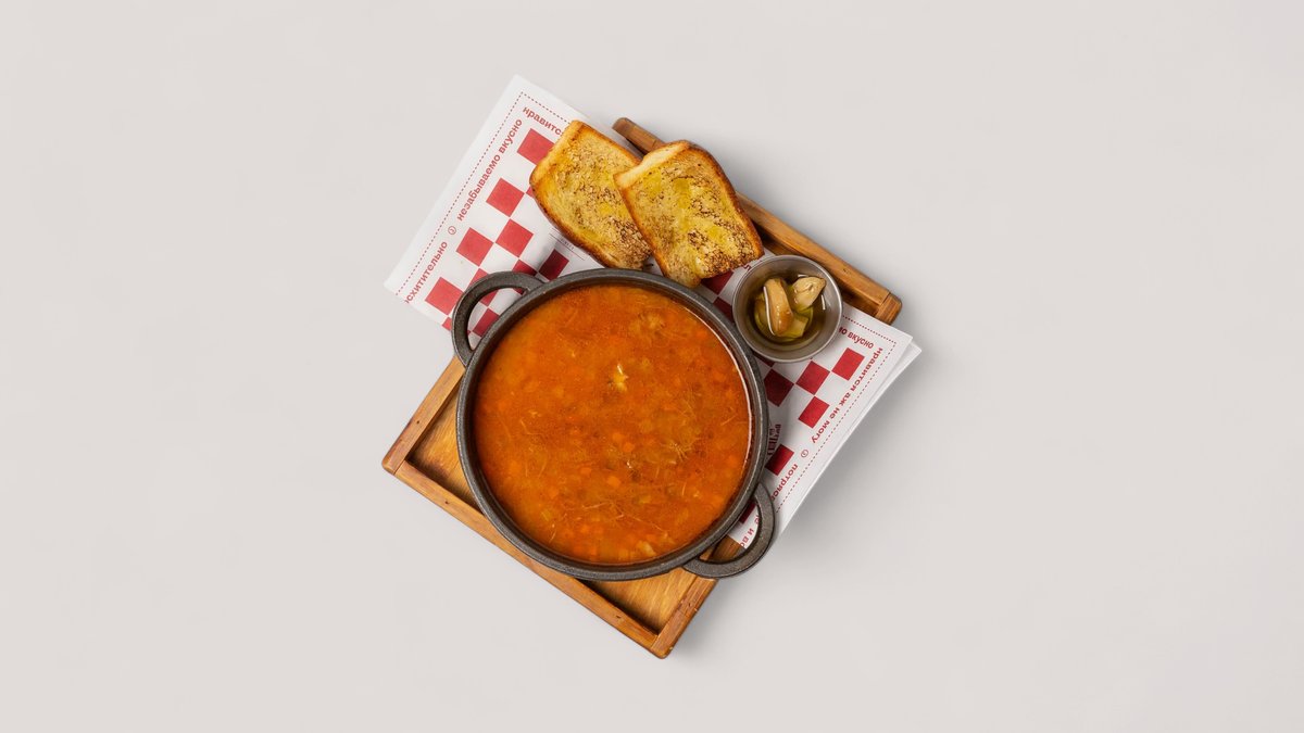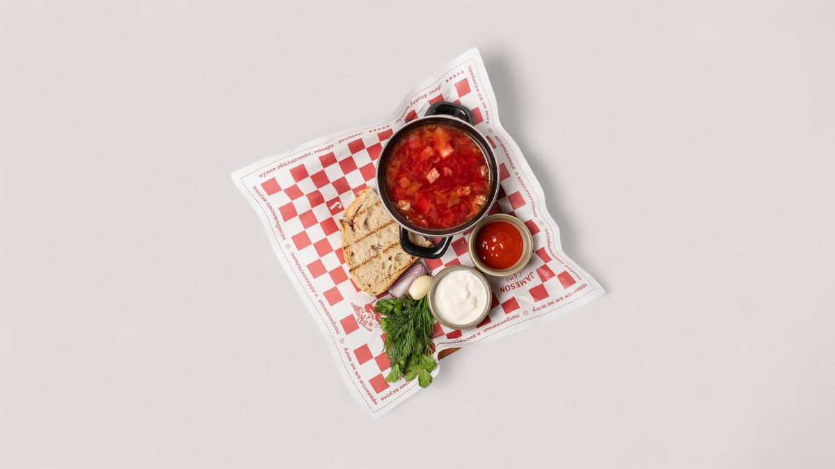 борщ с говяжьей грудинкой\копченая сметана\зелень