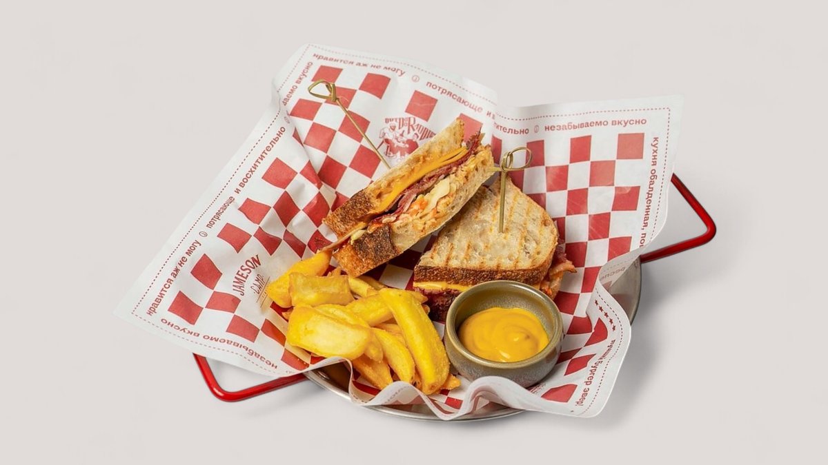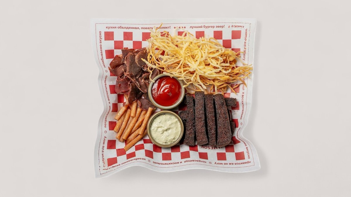 поджаренные тосты\пастрами\маринованная капуста\картофель фри