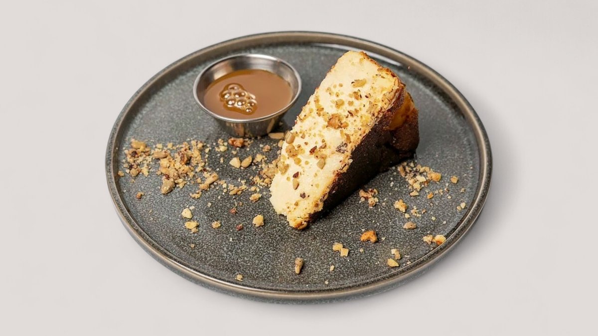 мясной суп-гуляш из говяжьих лыток\печеный чеснок в оливковом масле\бриошь