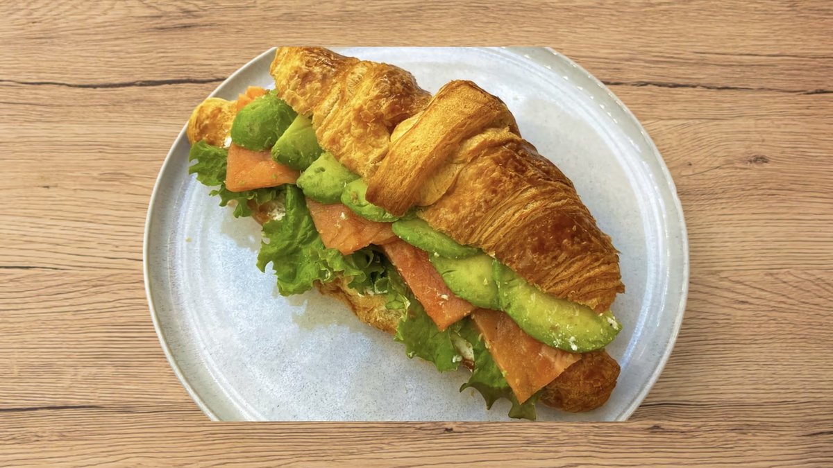 Свежий круассан, нежно-соленая семга и мягкий авокадо. Идеальный выбор для легкого завтрака или перекуса.