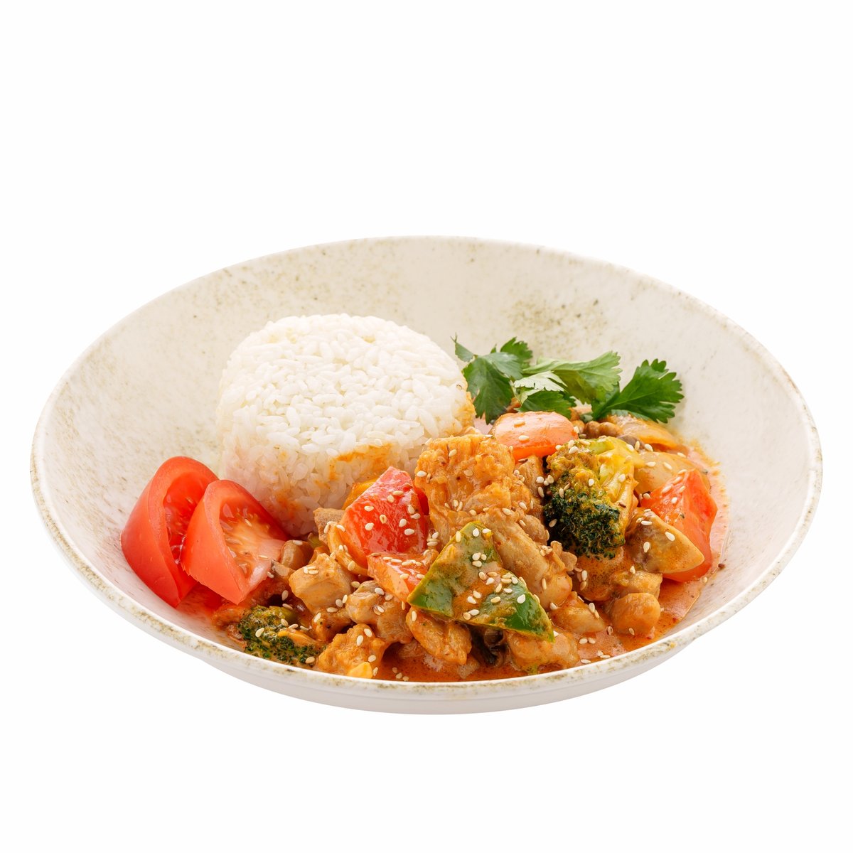 обжаренное куриное филе с овощами в соусе карри