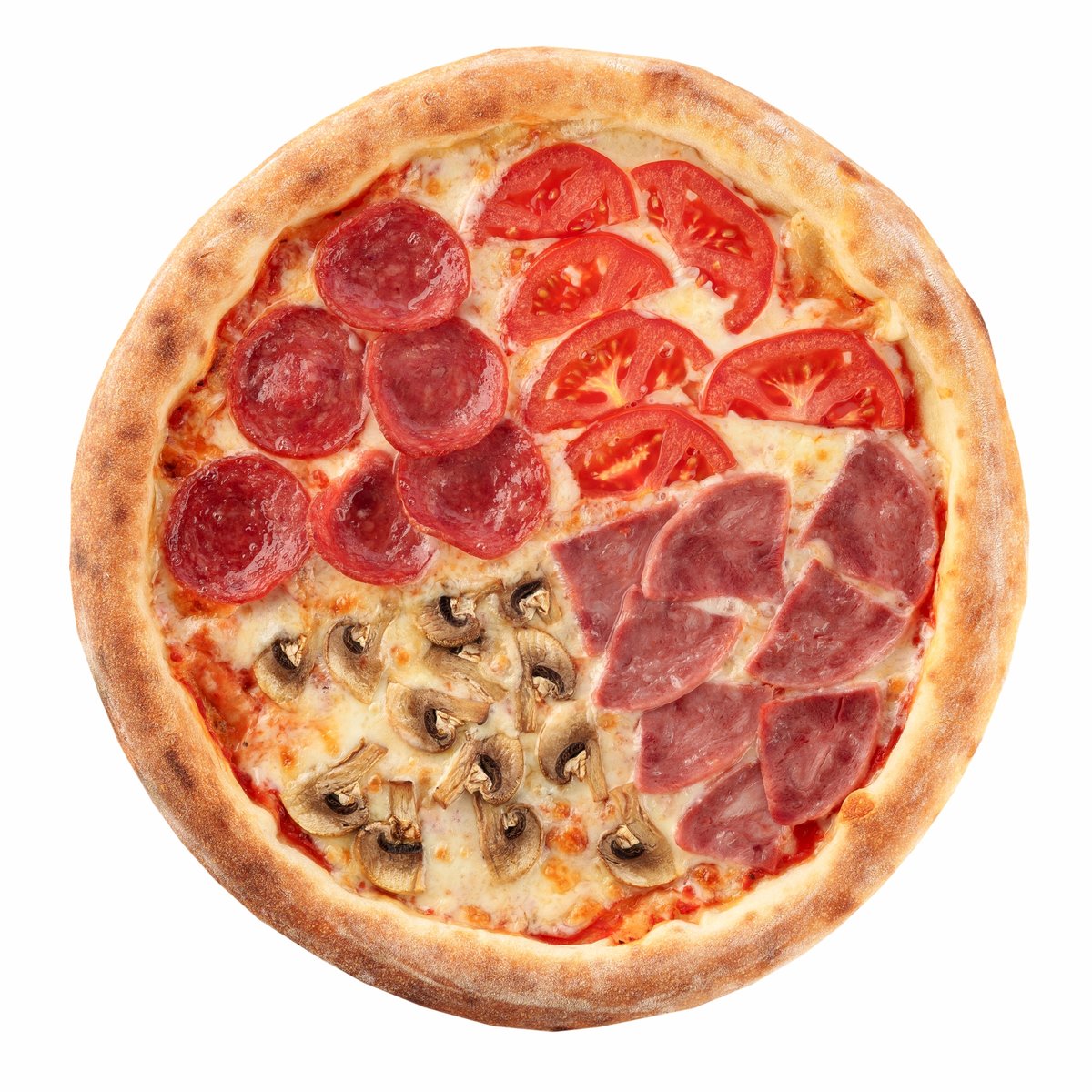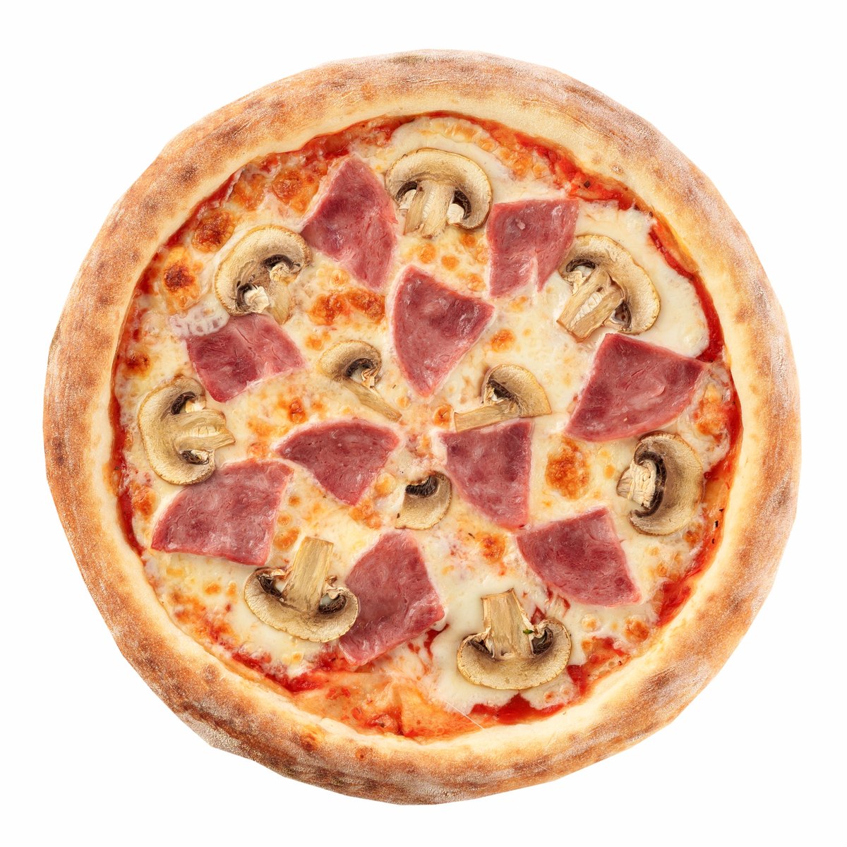 ветчина,шампиньоны,сыр моцарелла.