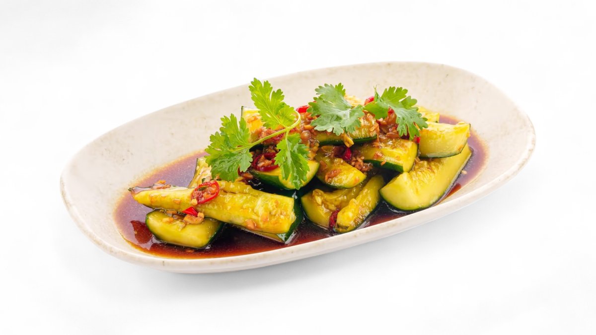 Сочные свежие огурцы, слегка раздавленные и заправленные пряным азиатским соусом — бодрящий вкус Востока!