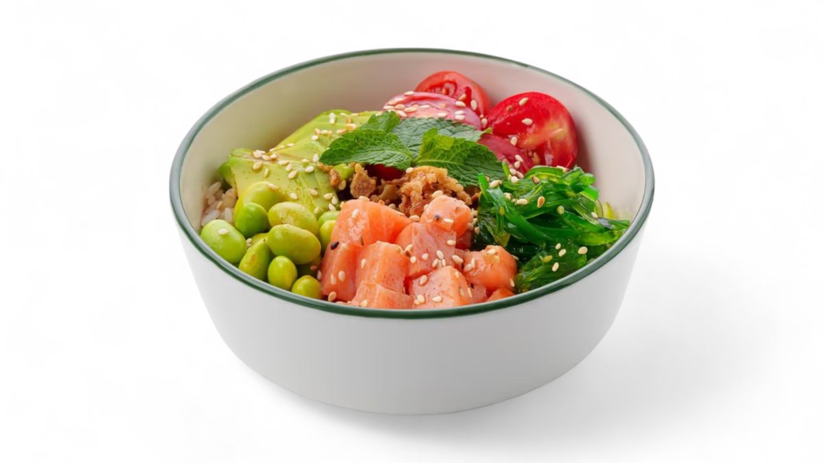 Яркий и свежий боул в гавайском стиле: сочный лосось, авокадо, эдамаме, чукка и черри на основе риса. Пикантные соусы придают остринку, а кунжут и жаренный лук завершают вкус.