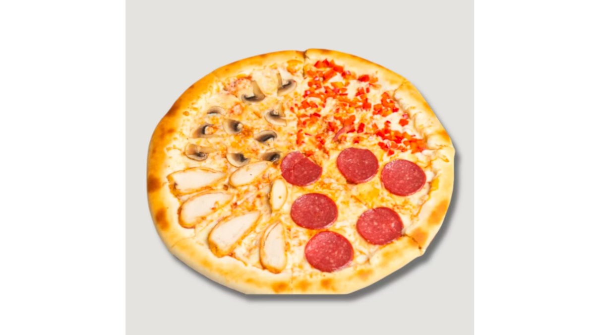 Томатный соус, сыр моцарелла, курица, грибы, пепперони, овощи