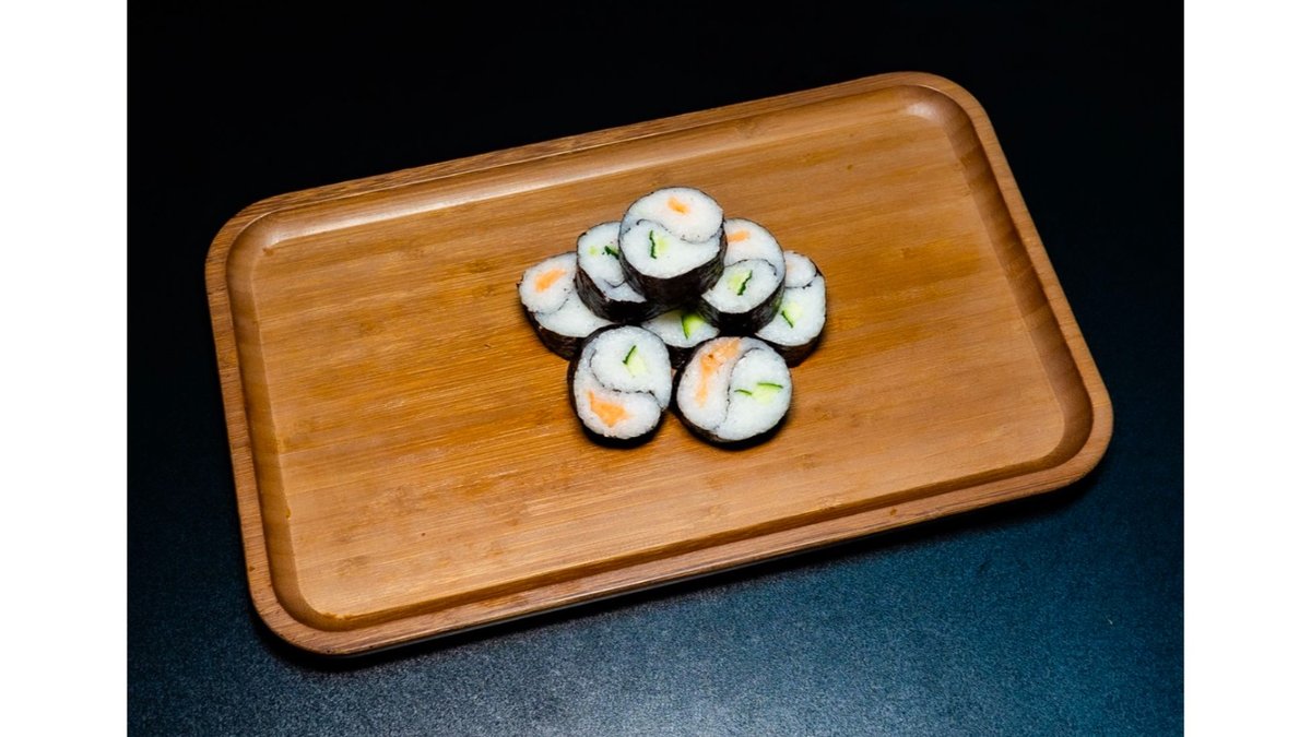 Состав: Рис, Курица, Нори, Огурцы, Фирменный соус