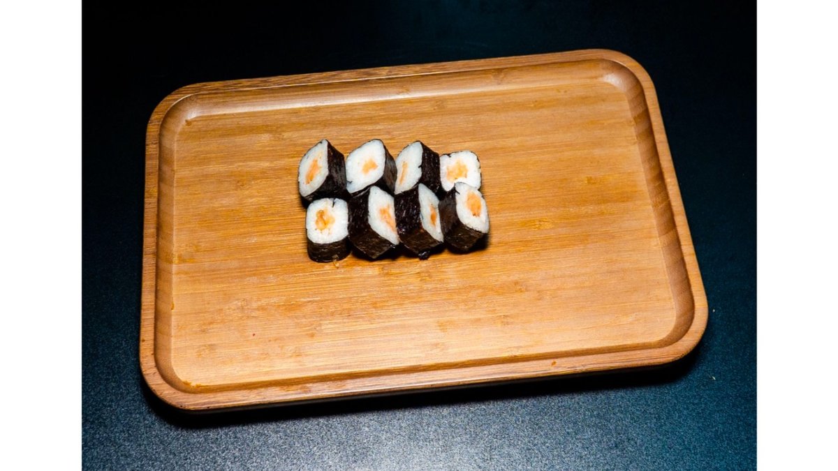 Состав: Соус запечённый, Сёмга, Нори, Рис, Сыр, Огурцы