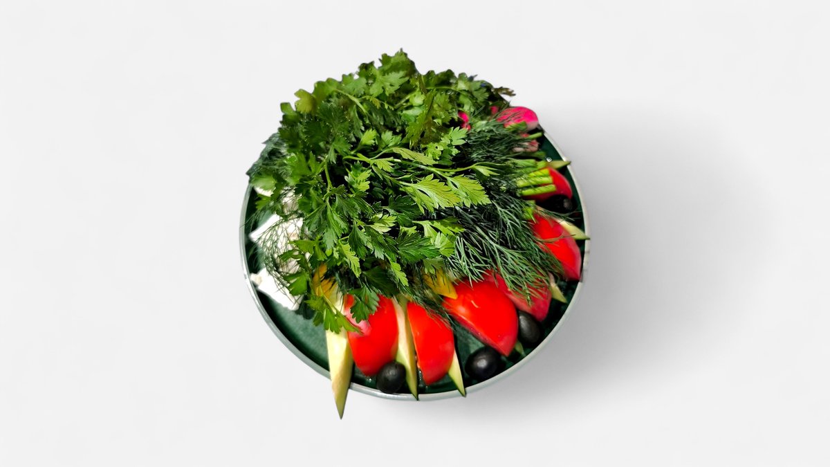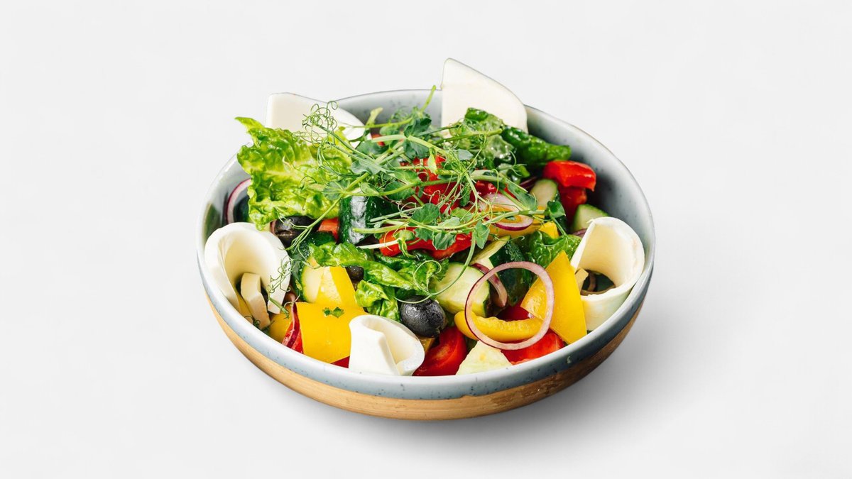 Огурцы, помидоры, болгарский перец, брынза, оливки, маслины, лист салата, лола росса, зеленый лук, укроп, кинза, базилик, петрушка, орегано, оливковое масло