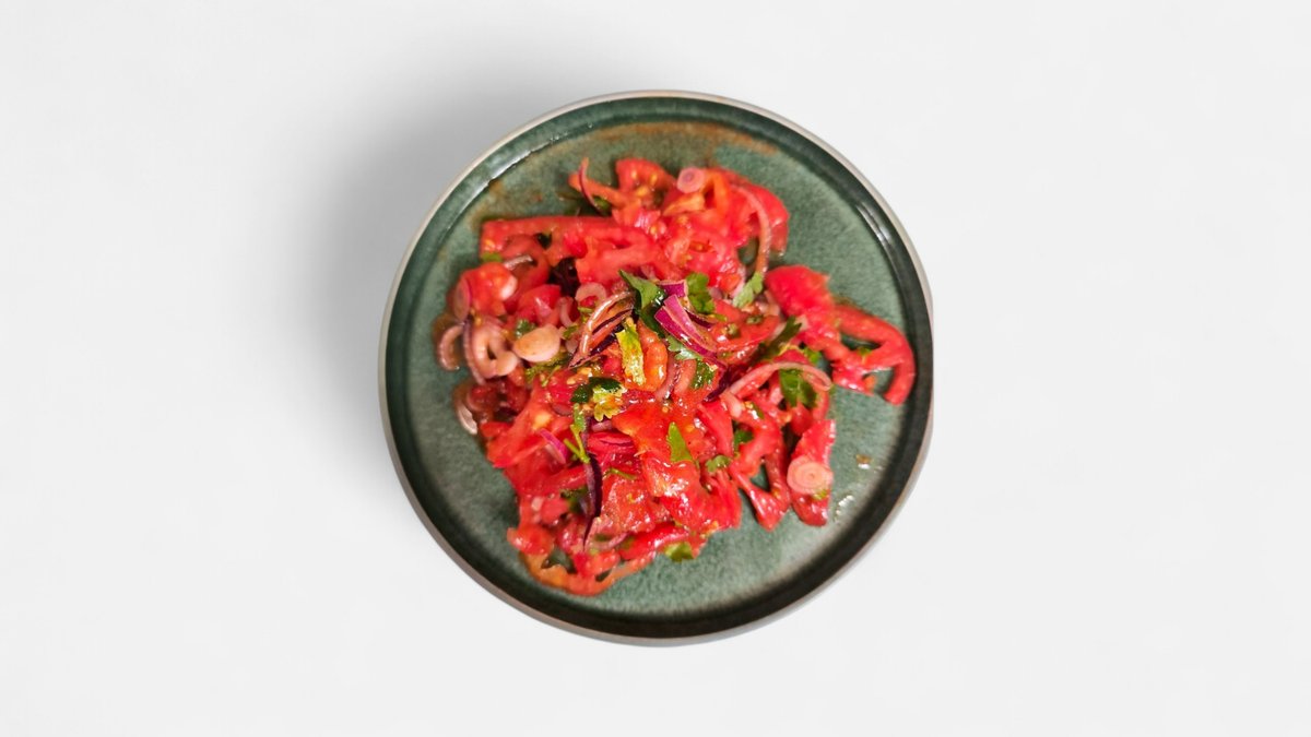 Свежие томаты, репчатый лук, кинза