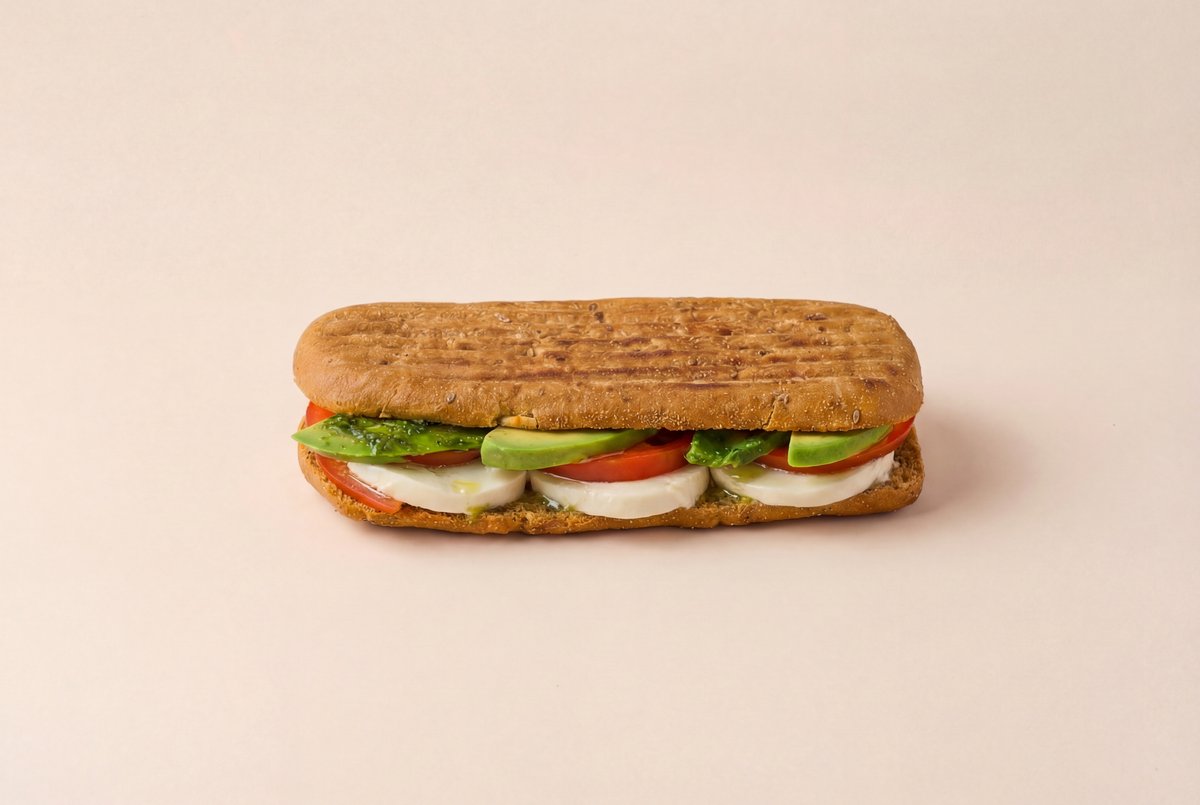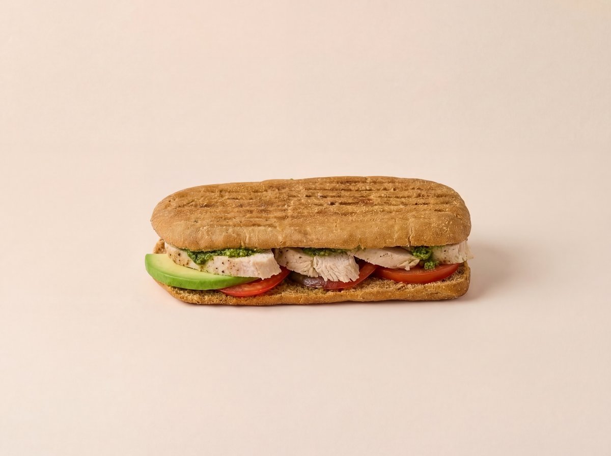 Куриное филе, авокадо, помидор, соус песто, злаковый хлеб