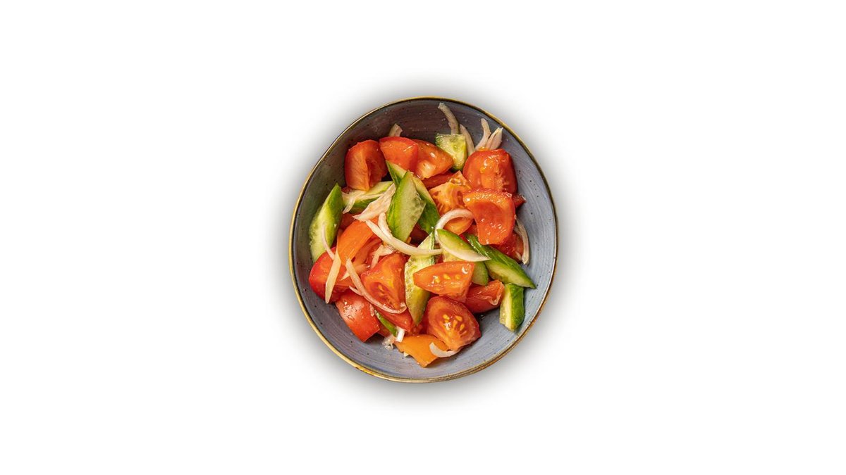 Салат по-домашнему и свежих овощей. В дополнением выбираете заправку