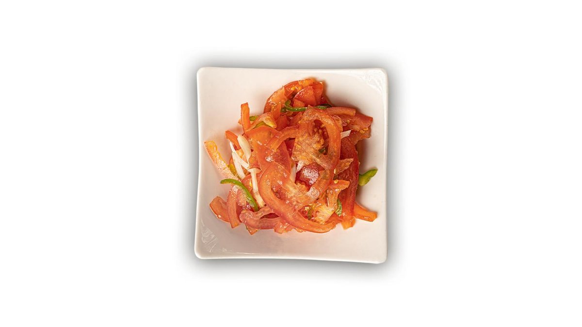 Ачик чук Салат является отличным дополнением к Плову. Нарезанные свежие помидоры с луком с добавлением молотого красного перца и зеленого свежего полу горького перца делают остреньким и изумительным