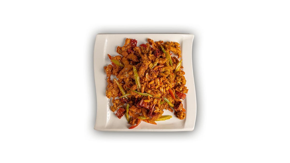 Хрустящая средне острые курица с арахисом. Является одним из востребованных блюд нашим заведении