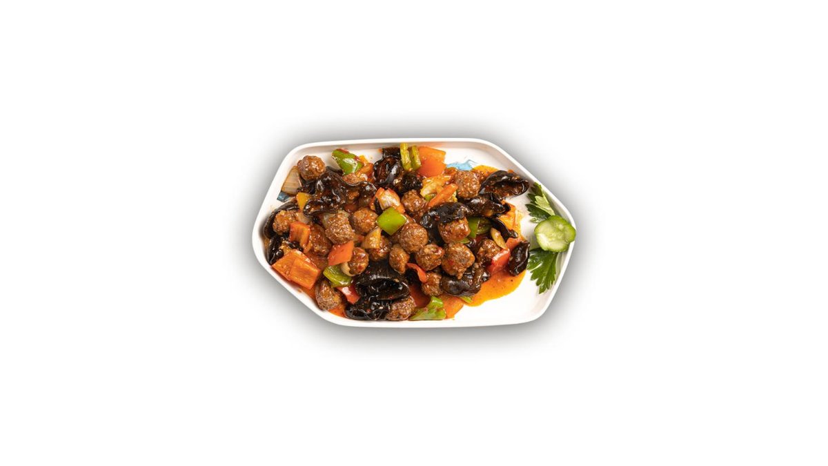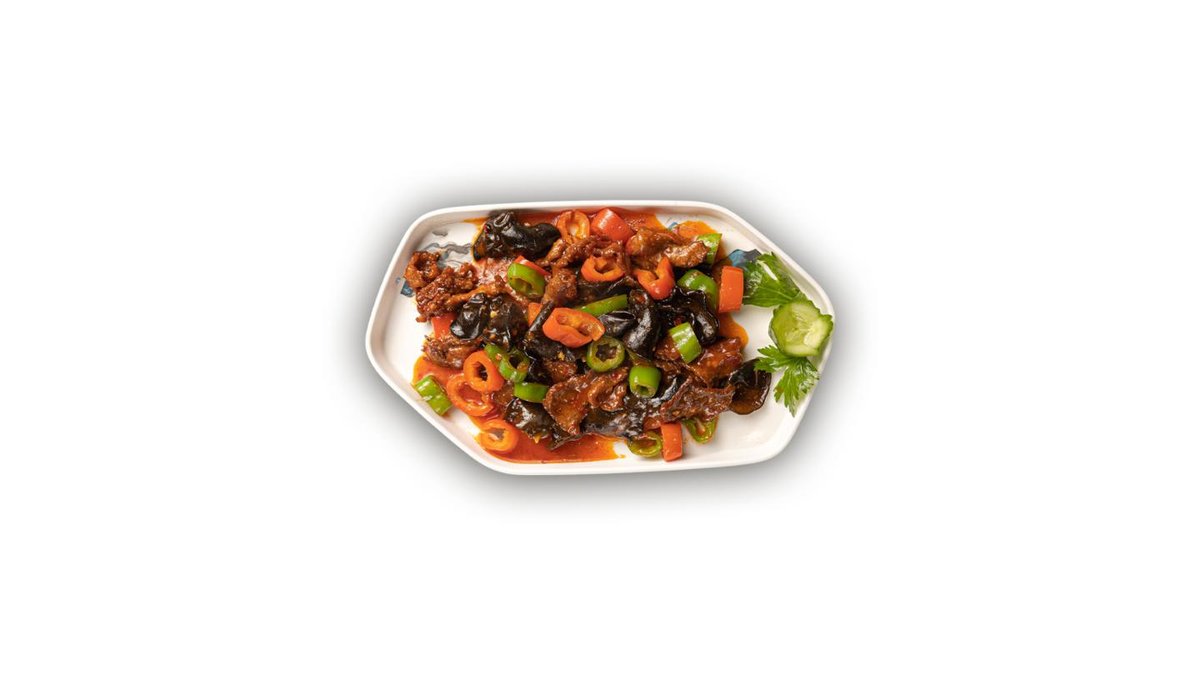 Обжаренное мясо говядины с чёрными древесными грибами с добавлением болгарского перца. Отлично подойдёт для любителей мясо с грибами