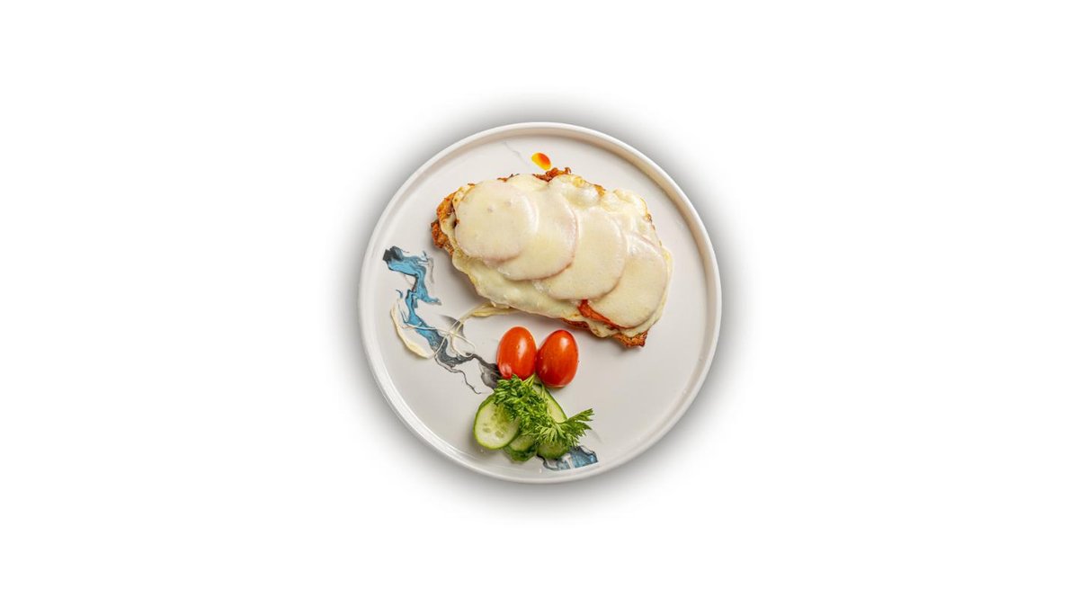 Сыр моцарелла, томатный соус, айсберг, курица, соус цезарь.