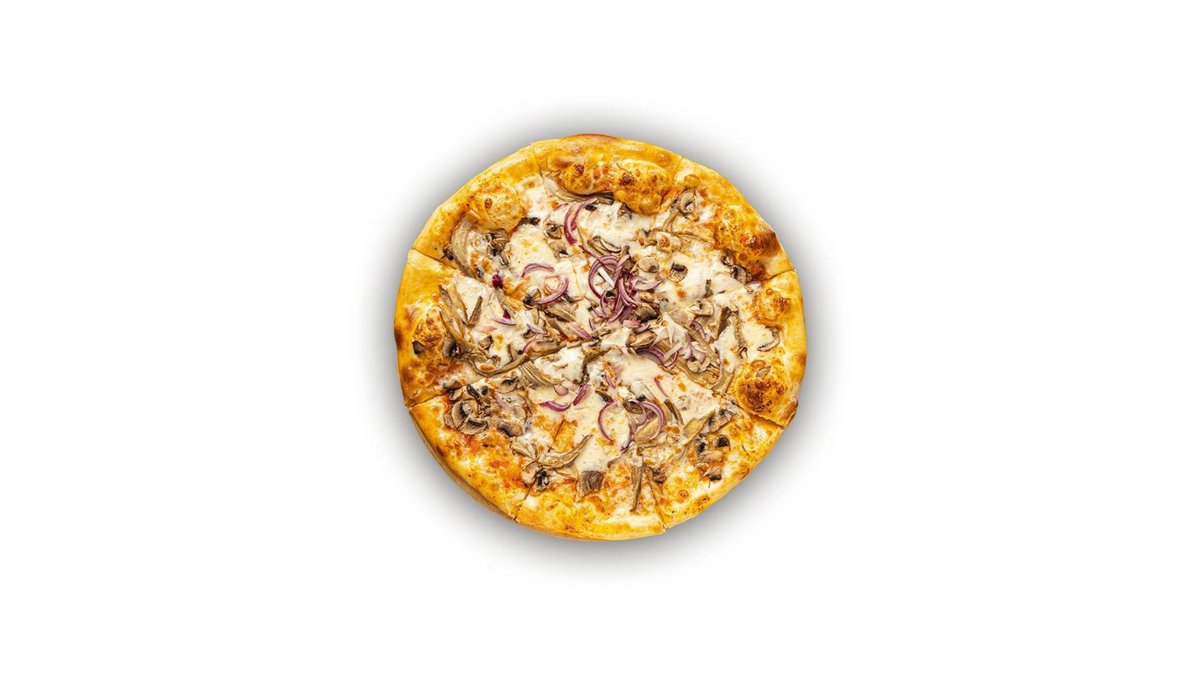Сыр моцарелла, томатный соус, вешенки, шампиньоны, лук красный