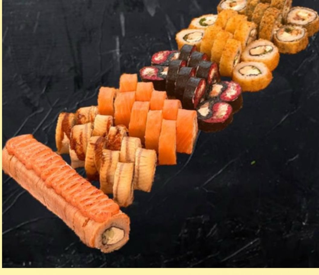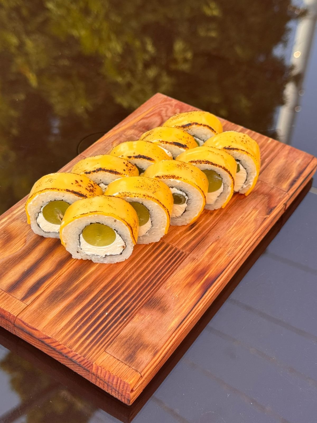 Филадельфия 10 шт Дракон 10 шт Поцелуй гейши 10 шт Цезарь жаренный 10 шт Америка темпура 10 шт Инь-Янь 10 шт
