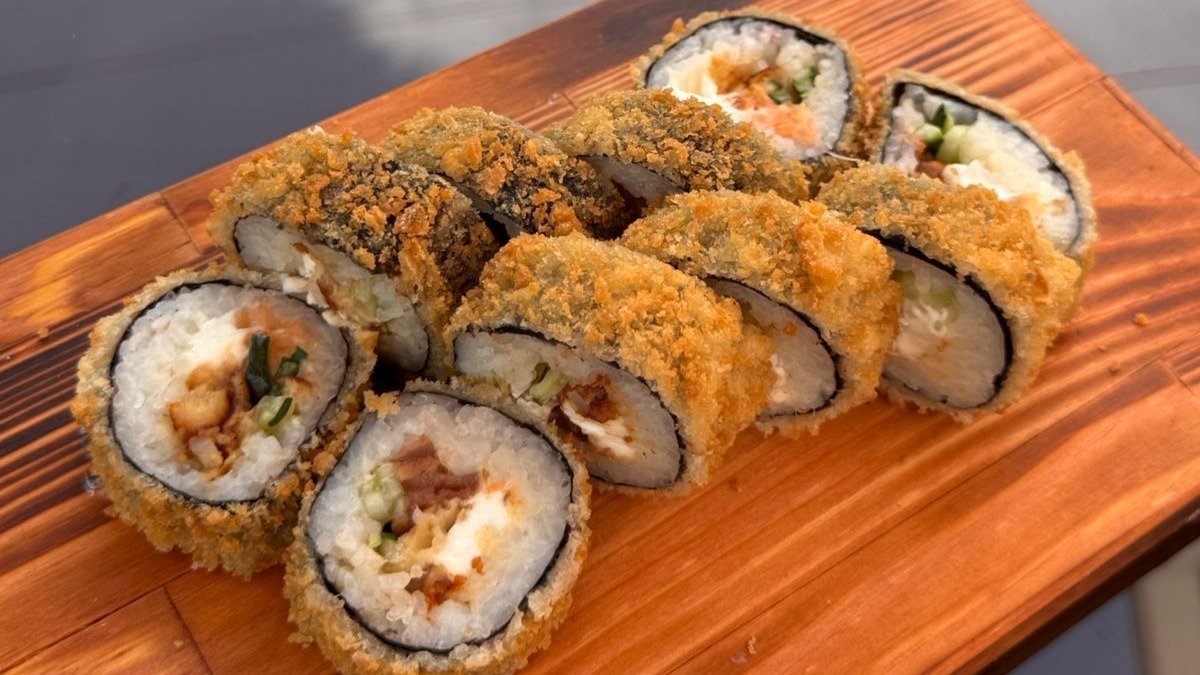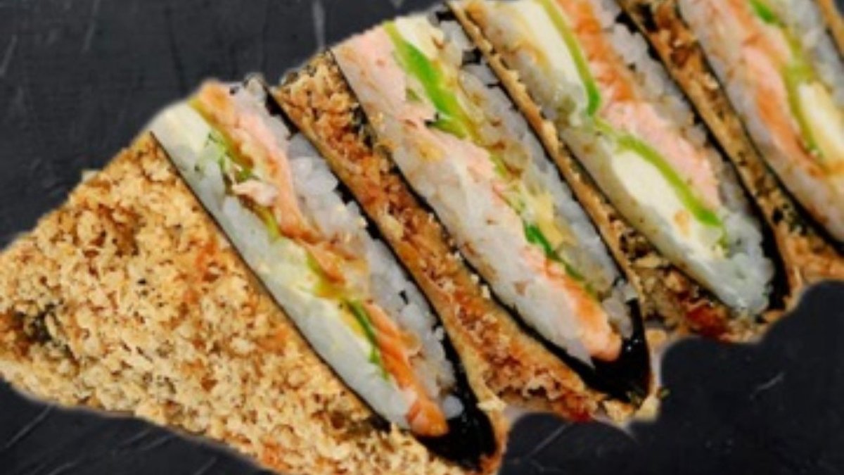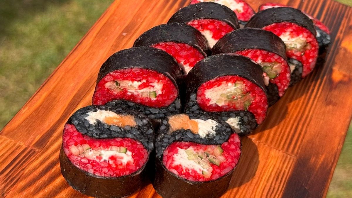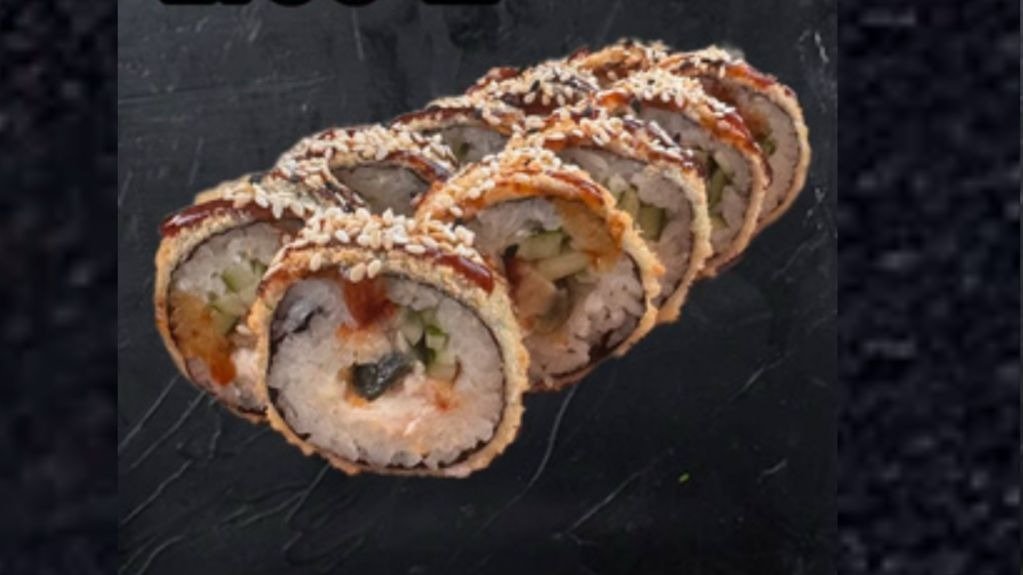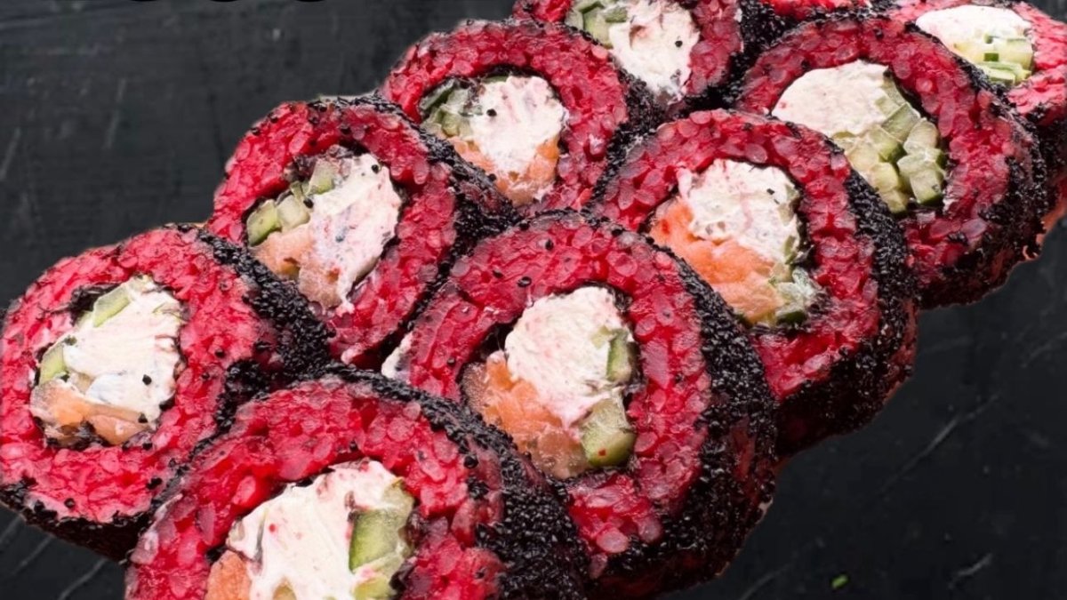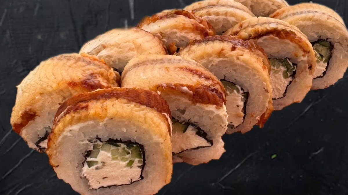 рис нори творожный сыр копченный сыр огурцы унаги соус кунжут