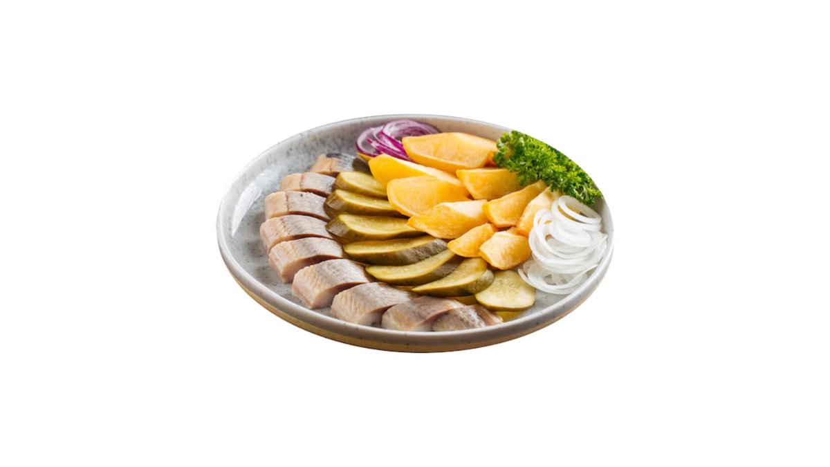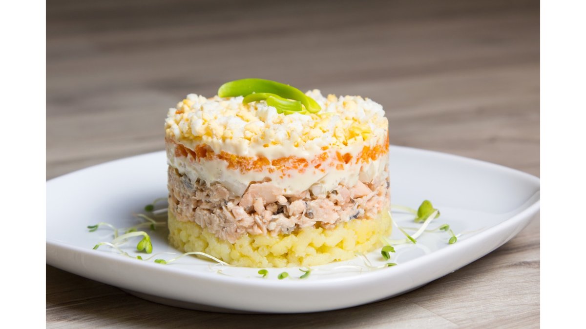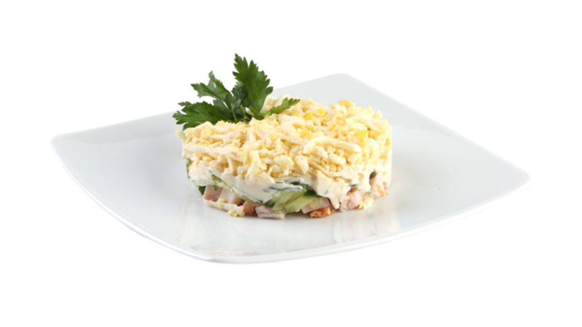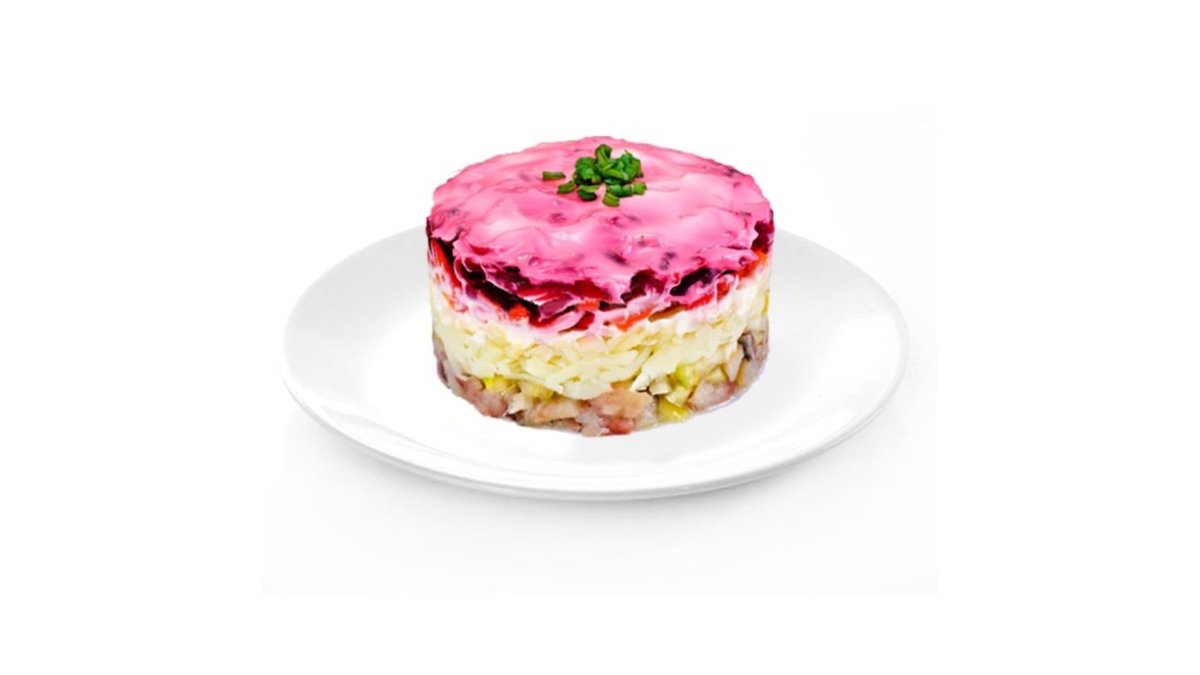 сельдь, картофель, сол. огурцы, красный лук, маслины
