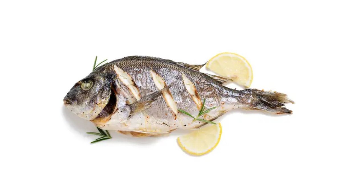 сибас, лимон, лук