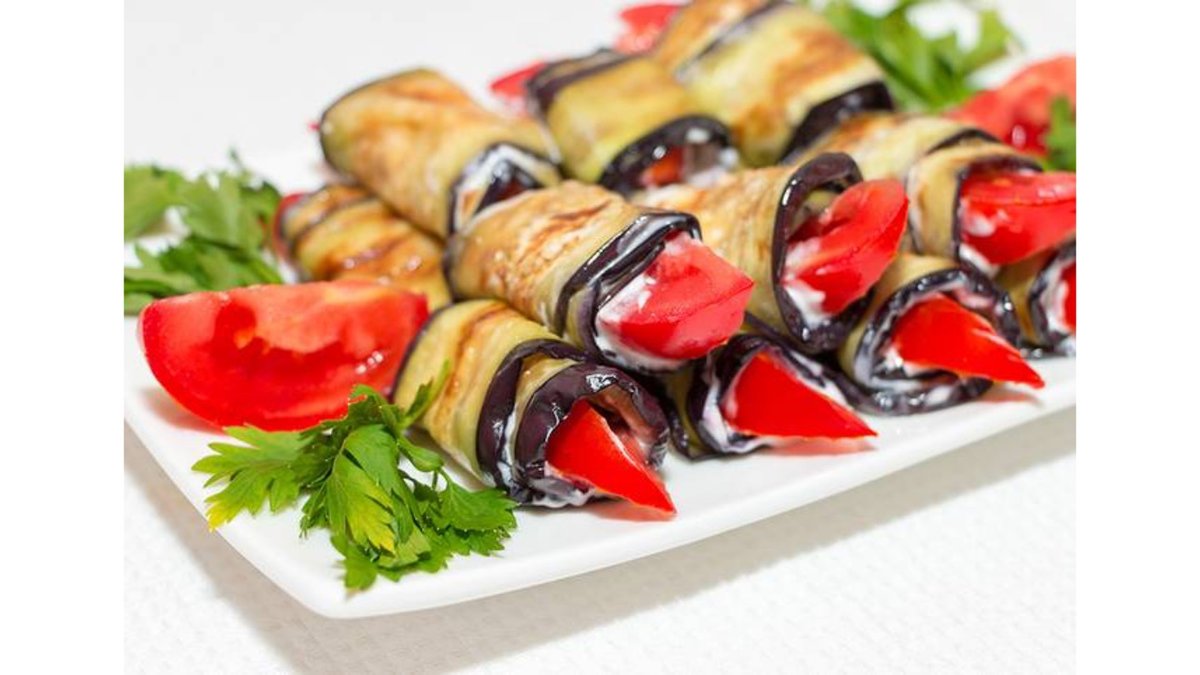 рулетики из баклажана с ореховой пастой