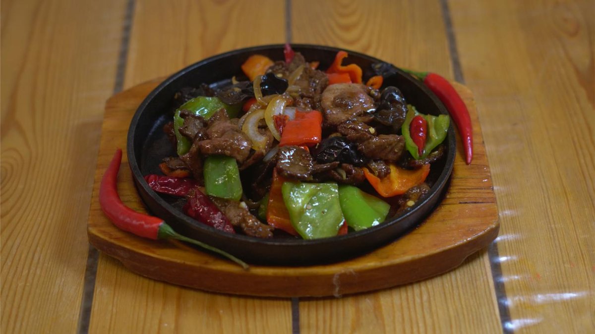 Говядина,грибы,полугорький перец,лук