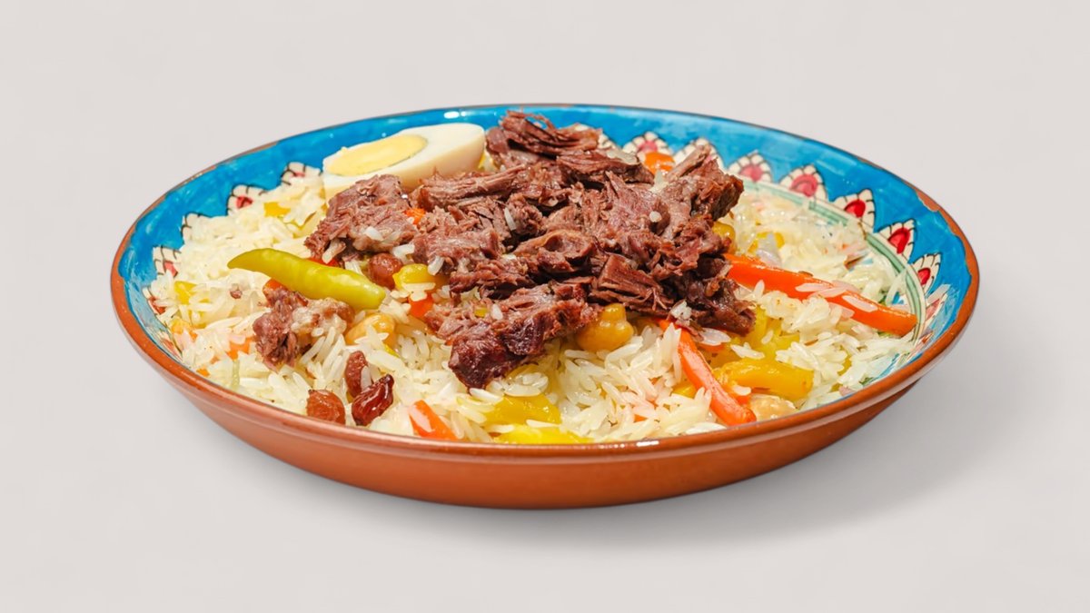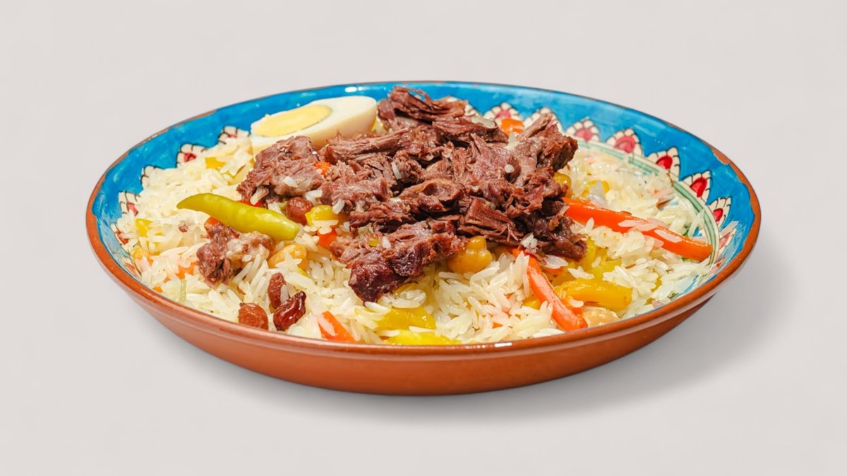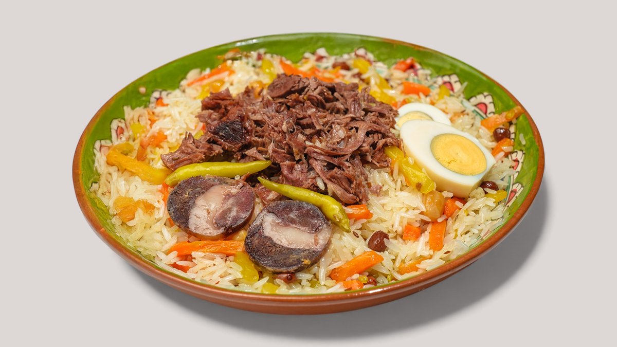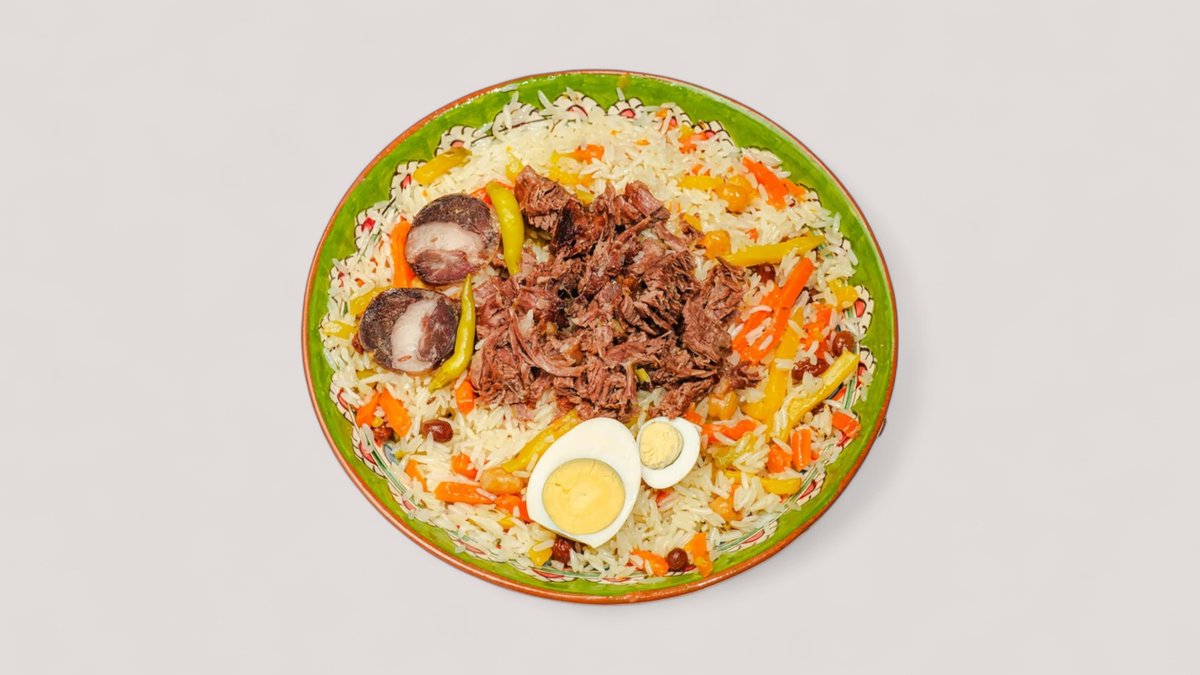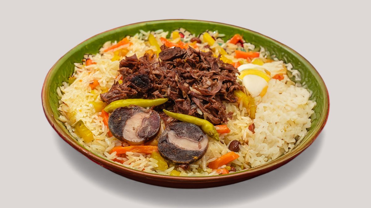 Плов с добавлением казы и богатым мясным вкусом. Сытно, ароматно и по-восточному щедро.