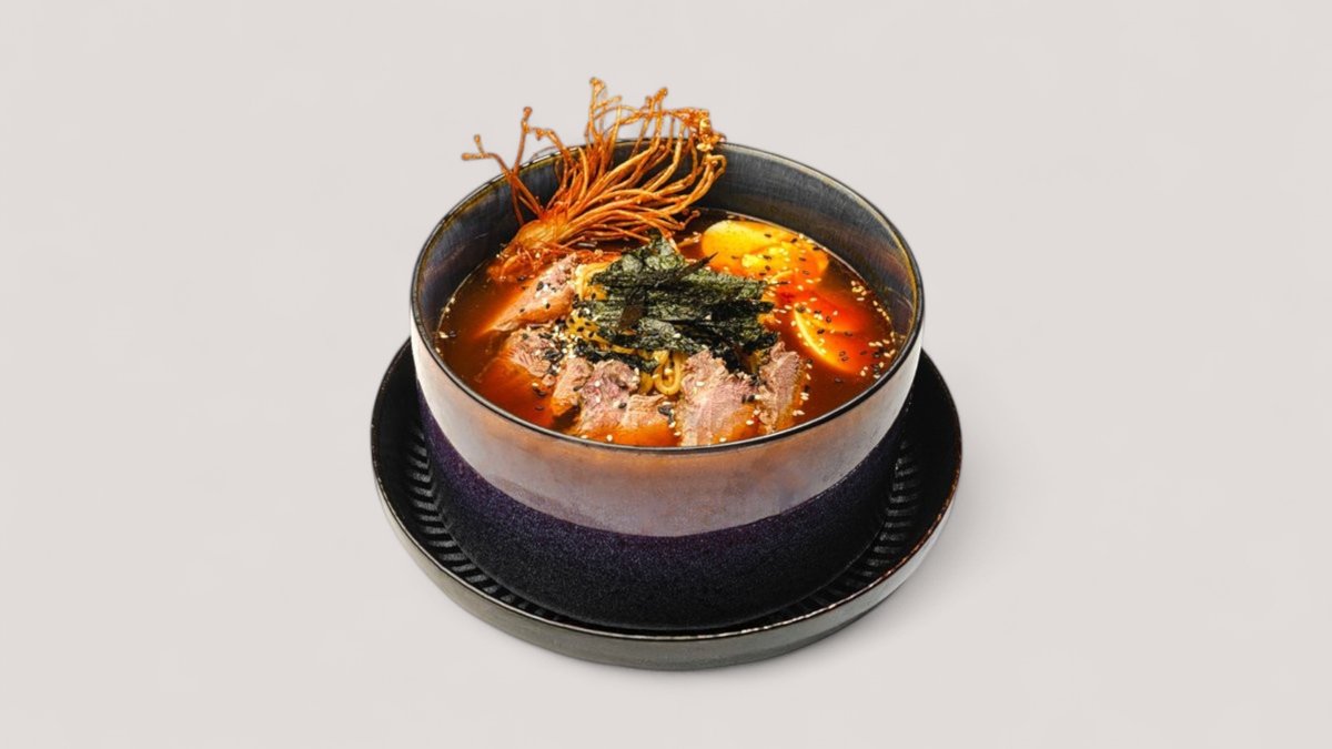 Глубокий мясной бульон, лапша и нежная говядина. Яркий вкус и хорошая порция.
