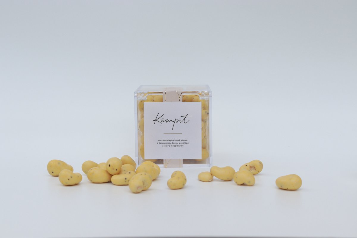 Кешью в бельгийском белом шоколаде с манго и маракуйей карамелизированный